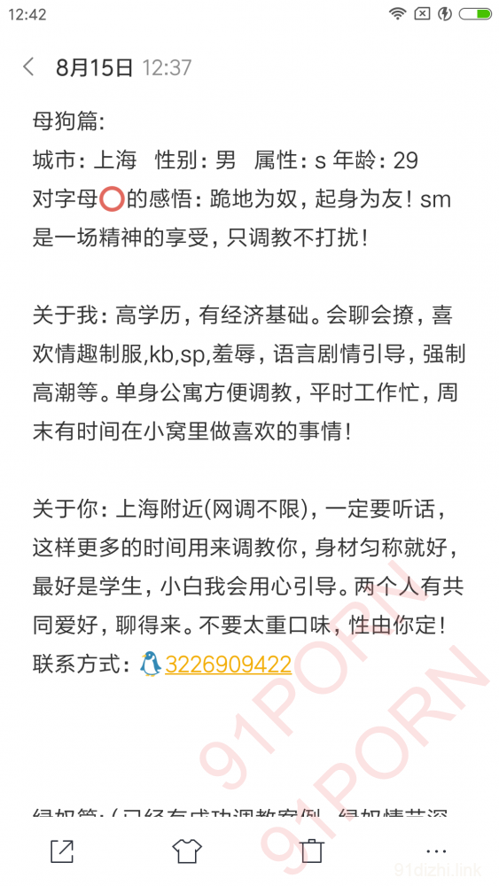 上海的绿奴母狗,有兴趣的加