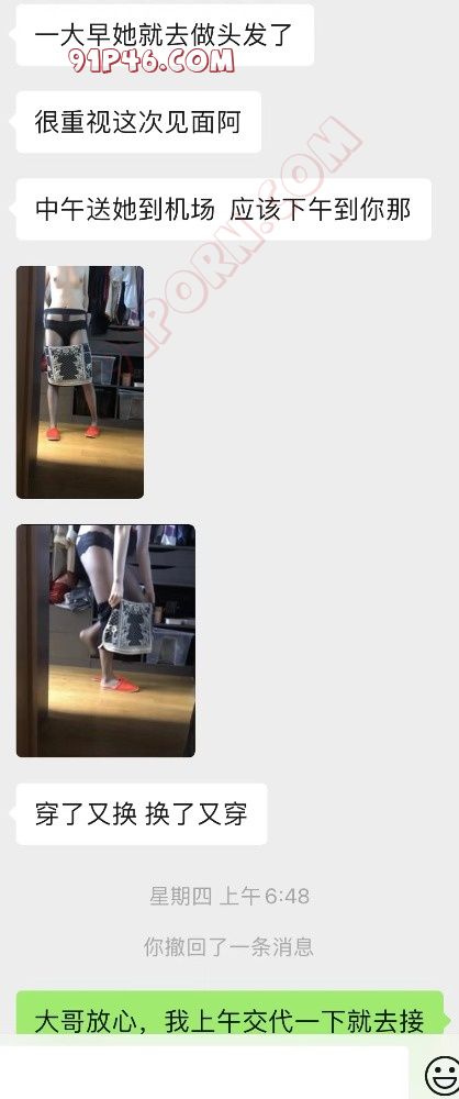 一下是大哥跟我截图,嫂子即将出发的上午