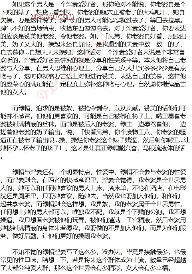 绿帽也好,绿奴也好,淫妻也好,可能有明显的特征属性,但归根结底来说都是