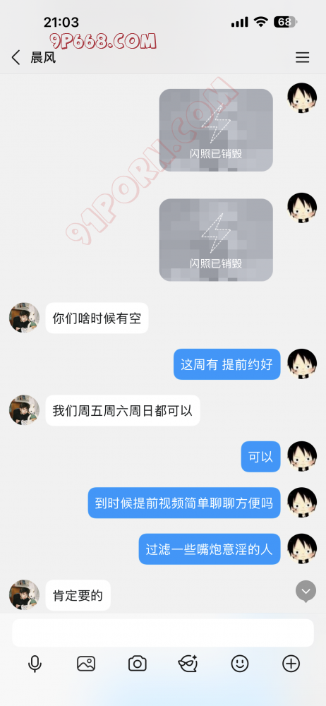 你就问他们能不能提前视频简单聊聊就行了,我最近加了很多人,一说视频的事好多人都不回了,这种人就是意淫yy的人,自己媳妇没有同意,一时精虫上脑说着能活动,其实也就是为了满足自己那点窥视欲,自己意淫能活动。结果说约时间活动啊,各种推脱。还有可能是单男冒充夫妻,同样拿别人照片就是为了骗几张照片骗几段视频,然后给别人发或者拿你的视频照片继续骗下一个。