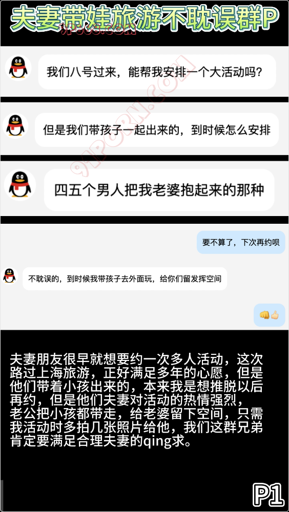 夫妻朋友很早就想要约一次多人活动,这次路过上海旅游,正好满足多年的心愿,但是他们带着小孩出来的,本来我是想推脱以后再约,但是他们夫妻对活动的热情强烈,老公把小孩都带走,给老婆留下空间,只需我活动时多拍几张照片给他,我们这群兄弟肯定要满足合理夫妻的qing求。